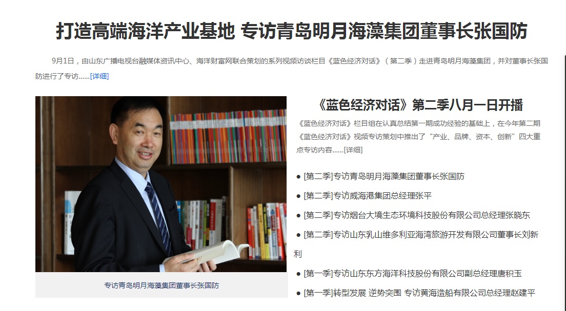 打造高端海洋產(chǎn)業(yè)基地 專訪青島明月海藻集團(tuán)董事長張國防