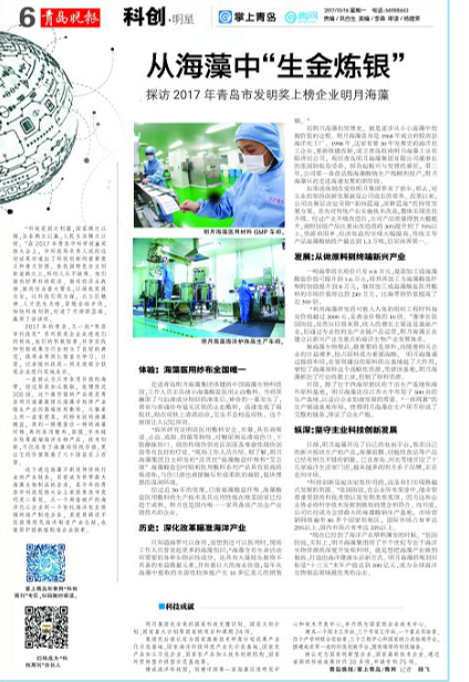 從海藻中“生金煉銀”| 探訪2017年青島市發(fā)明獎(jiǎng)上榜企業(yè)明月海藻