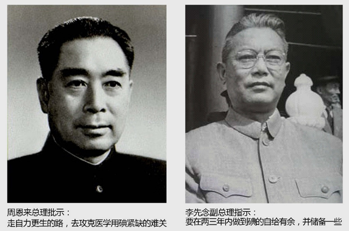 上世紀(jì) 60 年代 ,是一個(gè)嚴(yán)重缺碘的年代。碘是國(guó)家的重要戰(zhàn)略物資,對(duì)于國(guó)計(jì)民生有著舉足輕重的作用。新中國(guó)成立后,我國(guó)所需要的碘基本依賴進(jìn)口。隨著“冷戰(zhàn)”的加劇,西方國(guó)家對(duì)我國(guó)實(shí)行經(jīng)濟(jì)封鎖,并采取“禁運(yùn)”政策中斷了我國(guó)碘的來源。為了打破“封鎖”,從根本上改變我國(guó)缺碘的嚴(yán)峻形勢(shì),周恩來總理作出重要批示:“走自力更生的道路,去攻克醫(yī)學(xué)用碘緊缺的難關(guān)。”李先念副總理指示:“要在兩三年內(nèi)做到碘的自給有余,并儲(chǔ)備一些?!?