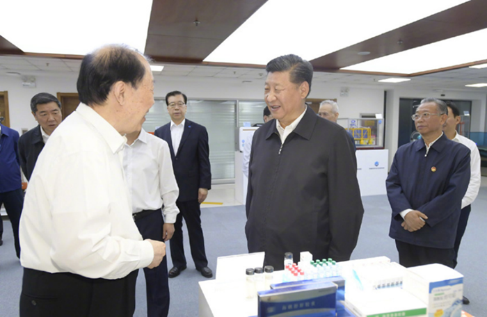 2018年6月12日上午,習(xí)近平在青島海洋科學(xué)與技術(shù)試點國家實驗室,聽取了79歲的中國工程院院士管華詩關(guān)于海洋藥物研發(fā)情況的介紹。