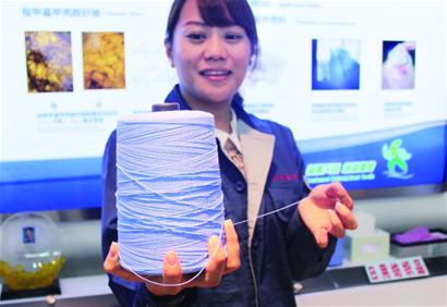 “這就是我們準(zhǔn)備推出的新產(chǎn)品——一種新型醫(yī)用輔料,它是以從海藻中分離出的海藻酸為原料制成的。”李可昌告訴記者,這種紗布是從海藻中提取海藻酸形成海藻酸鈉制成的,具有高濕性、止血快、易去除等多種優(yōu)點(diǎn),“當(dāng)海藻酸鹽纖維用于傷口接觸層時(shí),與傷口滲出液接觸,海藻酸鹽中的鈣離子和滲出液中的鈉離子發(fā)生交換,生成可溶性的鈉鹽。這個(gè)離子交換反應(yīng)使得海藻酸鹽膨脹并在傷口表面形成一種濕的凝膠膜。這種凝膠膜是親水性的,可使氧氣通過而細(xì)菌不能通過,并促進(jìn)新組織的生成。”從經(jīng)濟(jì)效益角度來講,10平方厘米的一塊“海藻繃帶”售價(jià)就高達(dá)80元,給企業(yè)帶來的產(chǎn)值比過去翻了十倍以上。